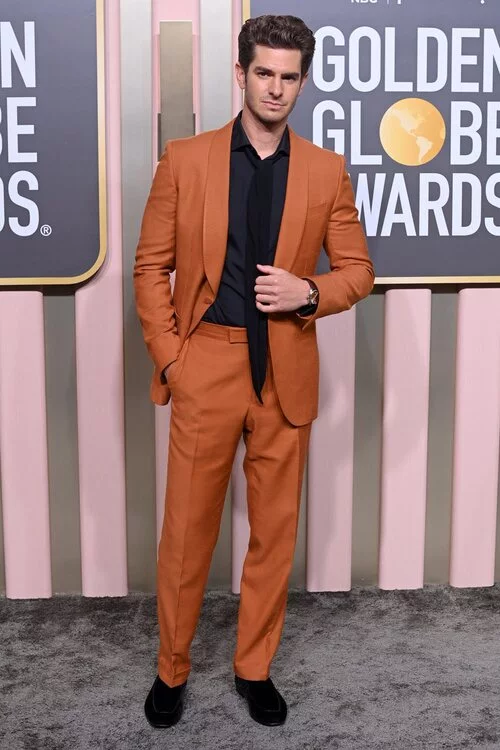 Andrew Garfiel posa en la alfombra roja de los Globos de Oro 2023