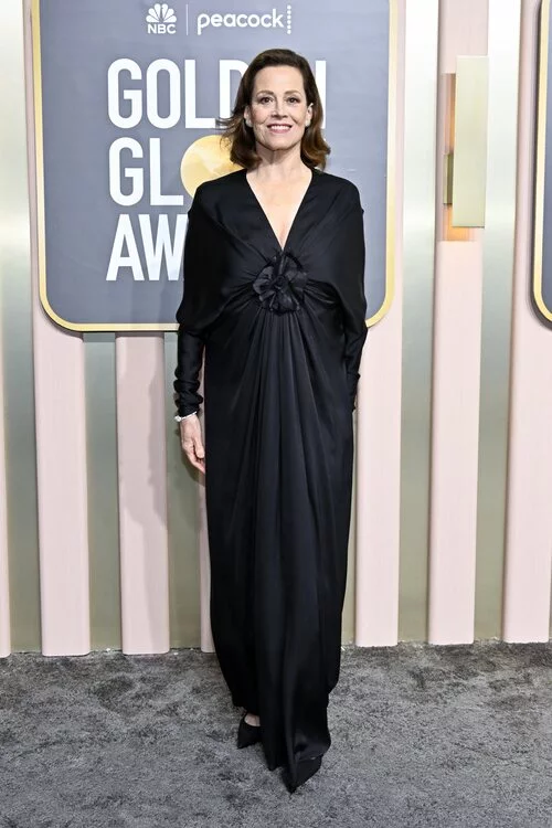 La actriz Sigourney Weaver en la alfombra roja de los Globos de Oro 2023