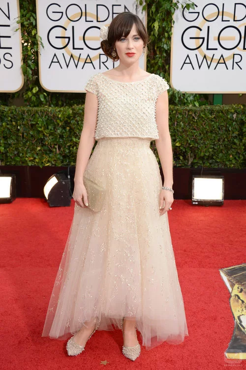 Zooey Deschanel en la alfombra roja de los Globos de Oro 2014