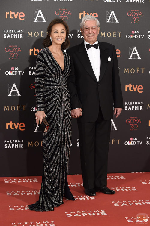 Isabel Preysler y Mario Vargas Llosa en la alfombra roja de los Goya 2016