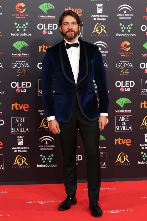 El reconocido actor Félix Gómez que protagoniza 'Alta mar' en Netflix y '14 de abril. La república' en TVE posa muy sonriente en la alfombra roja de los Premios Goya 2020.
