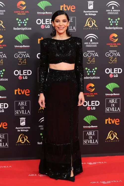 Irene Visedo, sonriente en la alfombra roja de los Premios Goya 2020