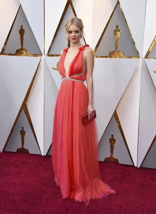 Samara Weaving posa en la alfombra roja de los Oscar 2018