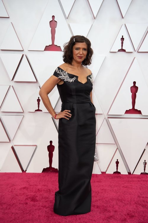 Kaouther Ben Hania posa en la Alfombra Roja de los Oscar 2021