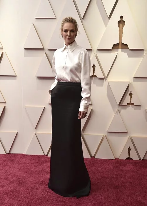 Uma Thurman posa en la alfombra roja de los Oscar 2022