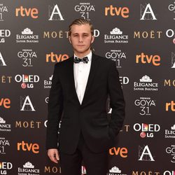 Álvaro Cervantes en la alfombra roja de los Goya 2017