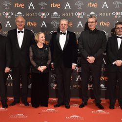 Yvonne Blake, Mariano Barroso e Íñigo Méndez de Vigo en la alfombra roja de los Premios Goya 2017