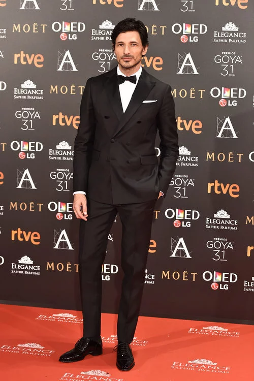 El modelo y actor Andrés Velencoso acude a la alfombra roja de los Premios Goya 2017 en el hotel Marriott Auditorium de Madrid.