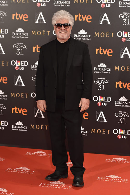 El conocido director de la película 'Julieta', entra otras, posa en la alfombra roja de los Premios Goya 2017 en Madrid.