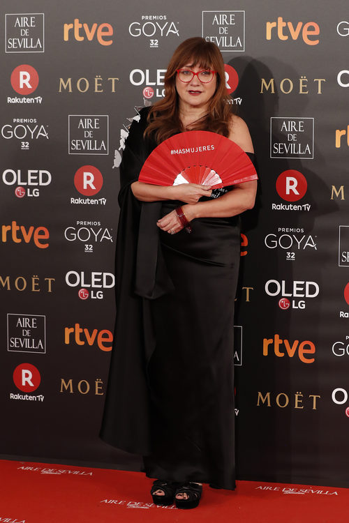 Nominada a Mejor Dirección por 'La librería' posa frente a las cámaras en la Alfombra Roja de los Premios Goya 2018.