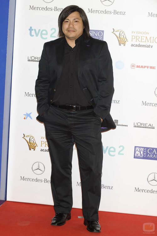 El actor Óscar Reyes, Machupichu en 'Aída', en el photocall de los Premios Iris 2013 de la Academia TV.