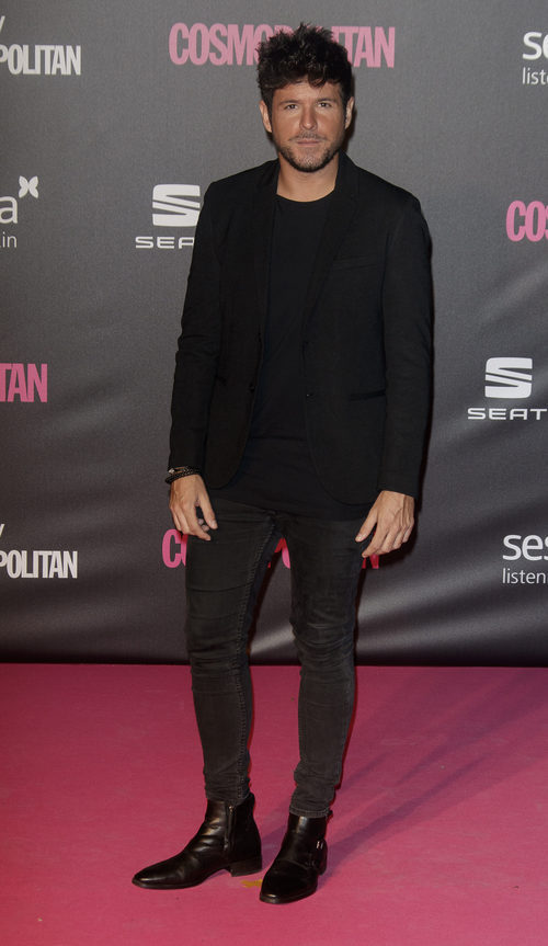 El cantante malagueño, totalmente vestido de negro, posa ante los medios de comunicación en la gala de los Premios Cosmopolitan.