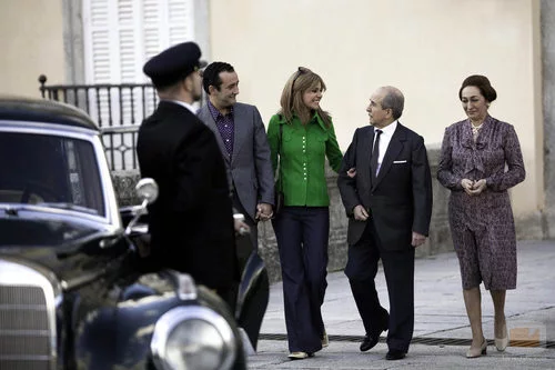 Carmen Martínez-Bordiú agarra del brazo a su abuelo Francisco Franco que va acompañado de su mujer Carmen Polo.