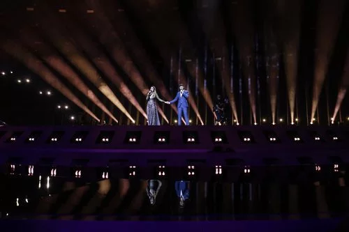 Amaia y Alfred ensayan por segunda vez en el escenario del Altice Arena de Lisboa días antes de la final del Festival de Eurovisión 2018.