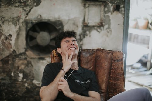 Alfred García, concursante de 'OT 2017', en un sillón de cuero marrón tras sacar a la venta su primer disco: "1016".