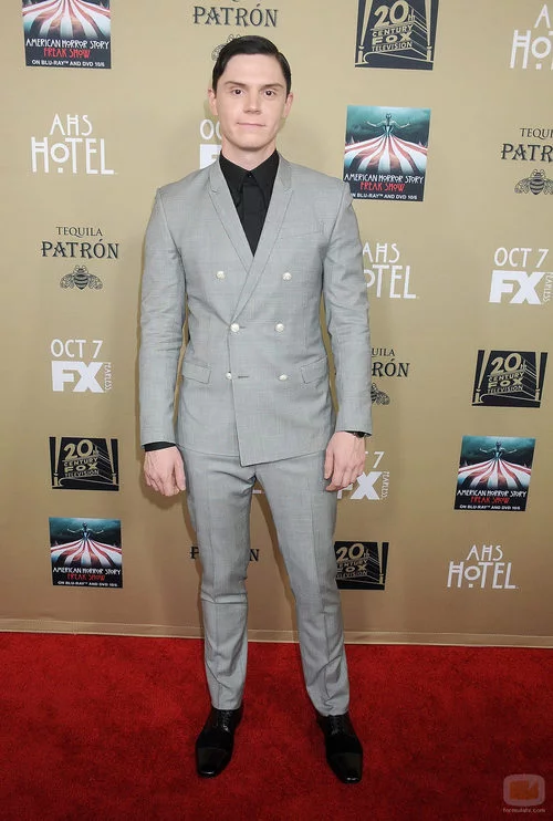Evan Peters, de riguroso gris, en la premiere de 'AHS: Hotel'