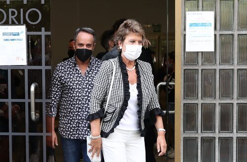 Víctor Sandoval y Conchita, en el tanatorio por la muerte de Mila Ximénez