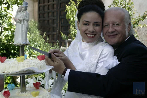 Fotografía de la serie 'Cuéntame cómo paso' con los actores Ana Arias y Juan Echanove durante el capítulo 'Y la cigueña dijo sí.
