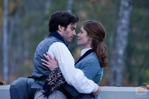 Los actores en una escena de la TV movie interpretando al conde Aleksei Vronsky y Anna Karenina, respectivamente.