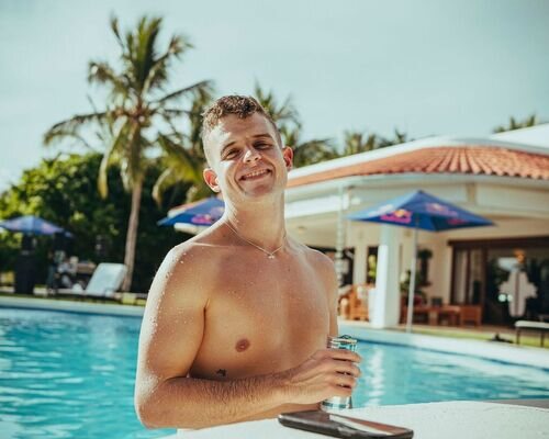 El rapero español y aspirante de 'MasterChef Celebrity 6' luce su torso desnudo en una fotografía en la piscina.