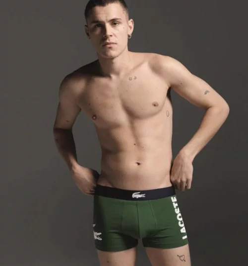 El joven protagonista de 'Élite', ficción juvenil de Netflix, luce paquete en una imagen de una campaña promocional de Lacoste.