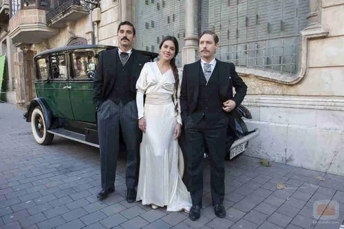 Tres de los personajes mas importantes recibiendo a los fotógrafos con el motivo del estreno de la miniserie.