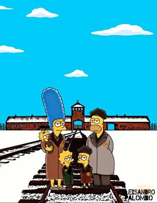 El artista italiano refleja a 'Los Simpson' en las instalaciones del campo de concentración
