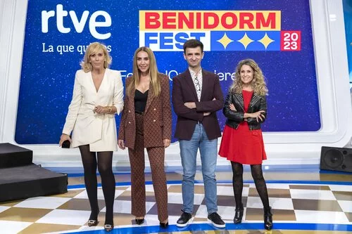 María Eizaguirre, Mónica Naranjo, José Pablo López y Eva Mora en la rueda de prensa del Benidorm Fest 2023.