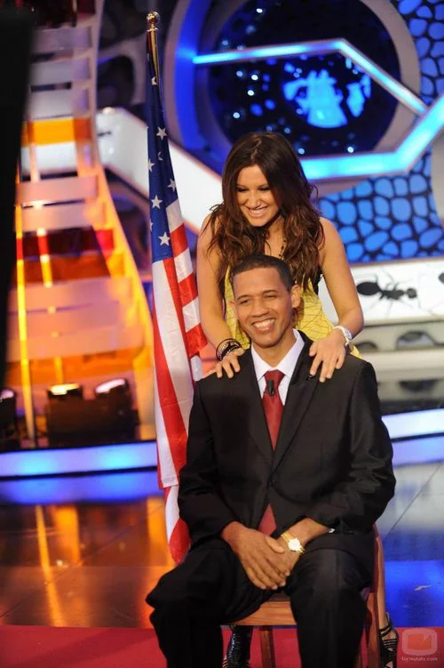 La actriz junto con un imitador de Barack Obama en su visita a 'El hormiguero'.