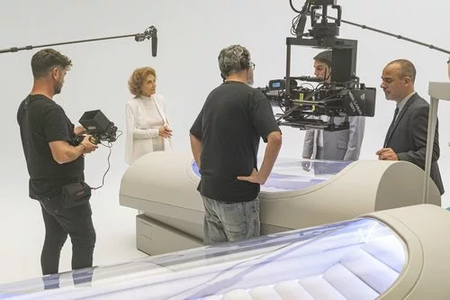 Julia Gutiérrez Caba, Alejo Sauras y Javier Gutiérrez junto a parte del equipo de grabación de 'Estoy vivo' en el cuarto episodio de la tercera temporada.