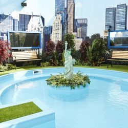 La Estatua de la Libertad reina en el centro del jardín de la casa de 'Celebrity Big Brother'