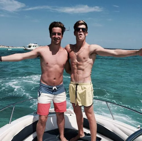 Miguel Bernardeau, actor e hijo de Ana Duato, posa junto a un amigo en un barco mientras luce sus abdominales. Bernardeau ha debutado en el cine con la película "Es por tu bien".