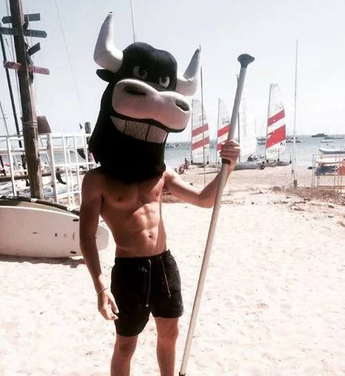 El hijo de Ana Duato posa mostrando sus abdominales mientras lleva una cabeza de toro. El actor debuta en el cine con "Es por tu bien".