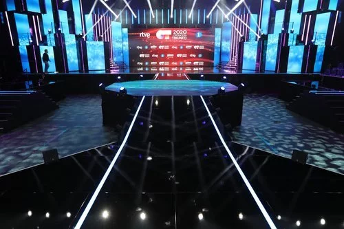 Pasarela que cruzan los concursantes para acceder al escenario central del plató de 'OT 2020' y para llegar a la zona de sofás en la que se encuentra Roberto Leal.