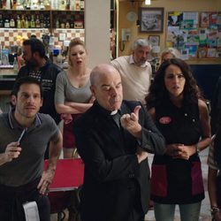 Parte del reparto de 'Aquí Paz y después Gloria' en el primer episodio de la serie