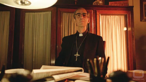 Cesar Sarachu encarna al Obispo Martínez Carrión en el primer episodio de la serie de Telecinco 'Aquí Paz y después Gloria'.