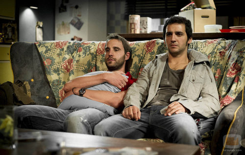 Juan y Mario sentados en un sofá en el tercer capítulo de 'B&b, de boca en boca'