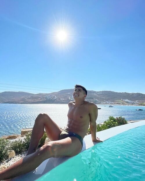 El bailarín de Chanel Terrero, Exon Arcos, disfrutando sin camiseta de sus vacaciones en Mikonos un año antes de viajar a Eurovisión 2022.