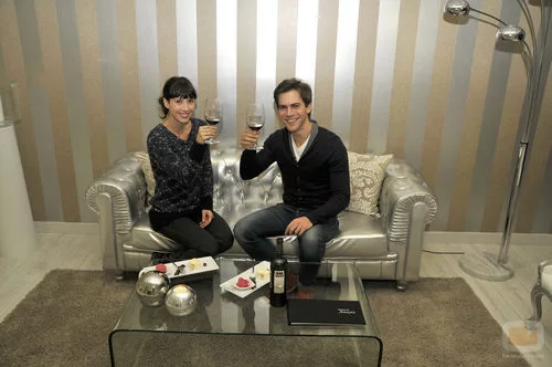 Bárbara Goenaga y Marc Clotet, de 'Amar es para siempre', brindando.