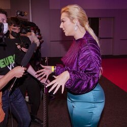 Ronela, con los periodistas en la Pre Party de Eurovisión en Barcelona