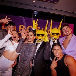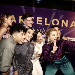 El equipo de baile de Chanel, posando junto a ella en la Pre Party de Barcelona