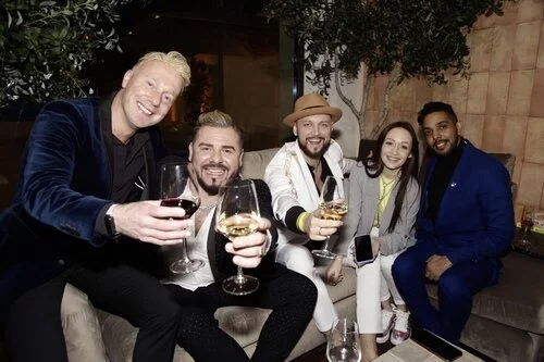 El trío moldavo SunStroke Project y Vladana Vucinic, representante de Montenegro para Eurovisión 2022, tomándose unas copas en la Barcelona Eurovision Party.