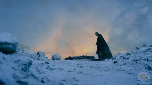 Davos Seaworth (Liam Cunningham) se sitúa frente a una pila de maderas en el noveno capítulo de la sexta temporada de 'Juego de Tronos'.