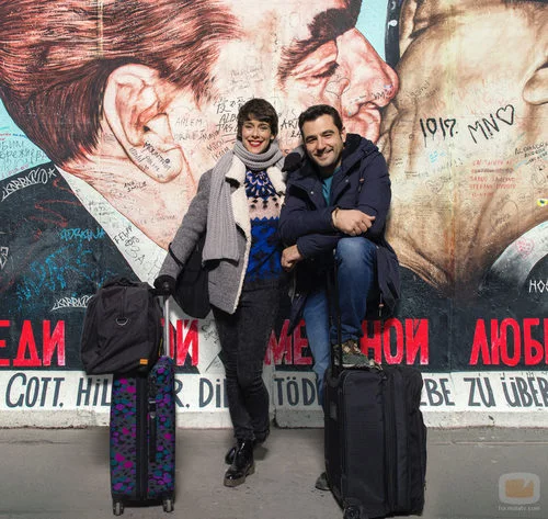 Foto promocional de Belén Cuesta y Antonio Velázquez en el muro de Berlín en 'Buscando el norte'