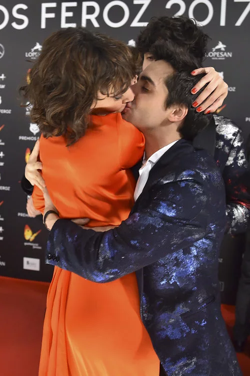 Javier Ambrossi eufórico besando a Belén Cuesta en la alfombra roja de los Premios Feroz 2017