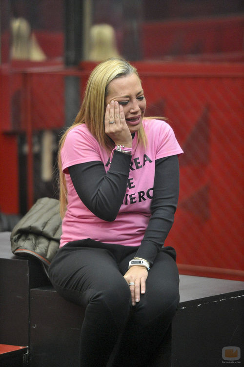 La colaboradora de Sálvame sentada y llorando tras saber que, finalmente, no es ella la expulsada de 'GH VIP 3'