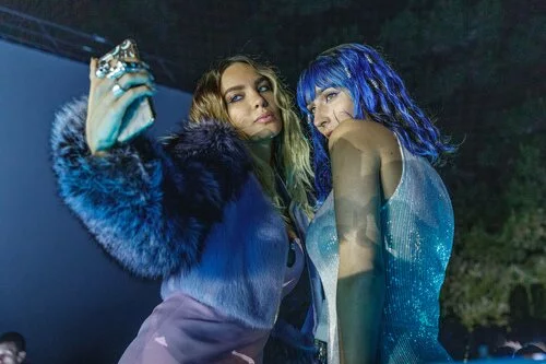 Belinda Peregrín y Lola Rodríguez se hacen una fotografía mientras disfrutan de una fiesta en la serie original de Netflix.