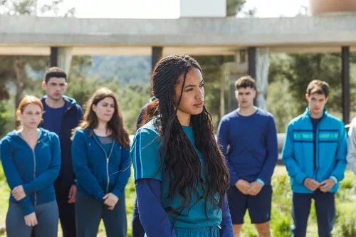 Dariam Coco observa atentamente durante una de las secuencias de 'Bienvenidos a Edén', el drama juvenil de Netflix.