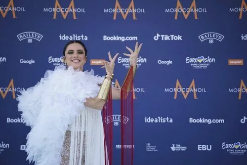 Blanca Paloma posa después de desfilar en la alfombra turquesa del Liverpool Opening Ceremony de Eurovisión 2023, la ceremonia de inauguración del Festival.
