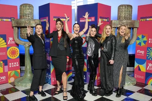Posado de Blanca Paloma y su equipo, en la inauguración del Benidorm Fest 2023